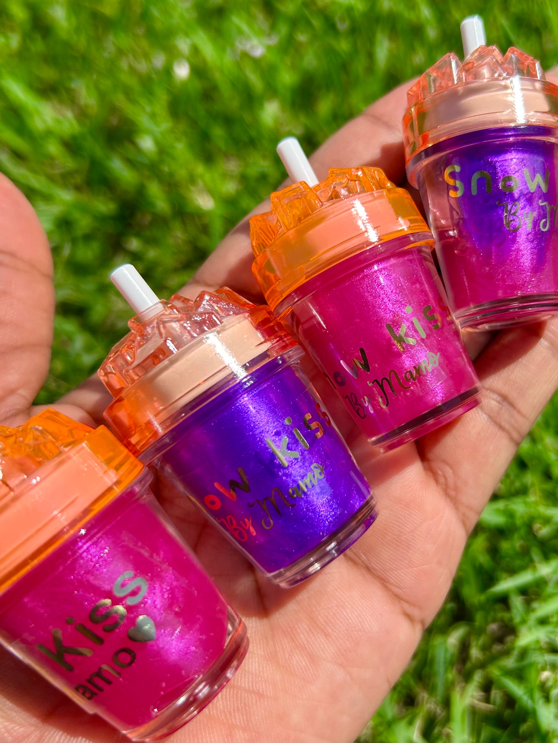 Get the ultimate glossy lips with our Snow Kiss Smoothie Glosses – each one packed with a delicious sweet strawberry flavor. Designed in adorable smoothie cup packaging, these glosses are as fun to collect as they are to wear. Perfect for everyday shine, soft lips, and a playful look.